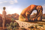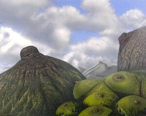 1991Dit landschap werd geschilderd in Zwitserland, en als mineralenverzamelaar kreeg ik het idee, ze juist in dat landschap plaatsen.