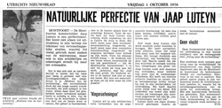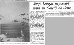 Artikel naar aanleiding van solo expositie bij Galerie De Jong te Zeist (bestaat niet meer) Een exact zelfde artikel stond op dat moment ook in de Nieuwsbode van Zeist. op 14 okt. 1976